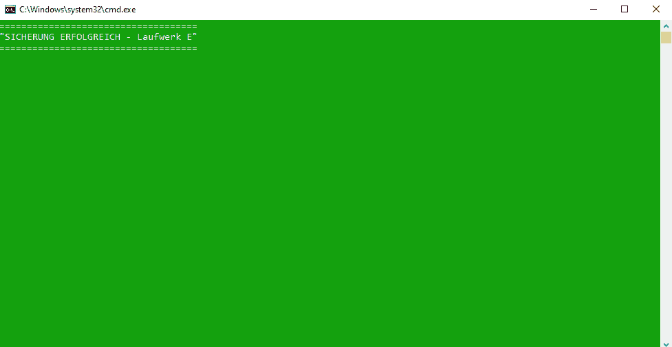 color 2f & call :print "SICHERUNG ERFOLGREICH - Laufwerk %Drive%" 30